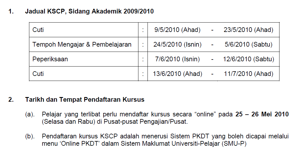 List of subjects that offered for this coming KSCP 2010: